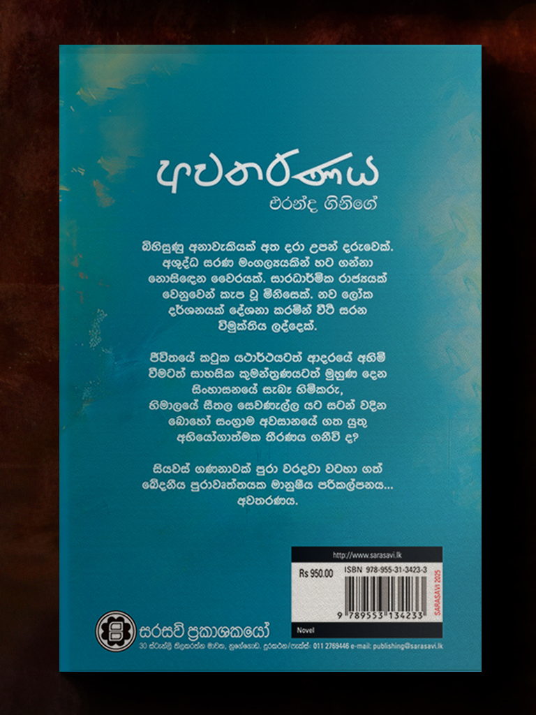 සිය සුවිශේෂී සමාජ සහ දේශපාලනික අත්දැකීම් තුළින් ලද ගැඹුරු අවබෝධයත්, සිංහල ඉතිහාස ගවේෂණයෙන් ලද දැනුමත්, නිර්මාණශීලී පරිකල්පනයත්, සිංහල භාෂාව කෙරෙහි කුඩා කල දැක්වූ හැකියාව කාලයක් තිස්සේ ප්රගුණ කිරීමත් පාදක කොට ගනිමින් එරන්ද ගිනිගේ විසින් රචිත සිය කුළුඳුල් සිංහල නවකථාව වන “අවතරණය” සරසවි ප්රකාශකයන් විසින් 2025 වසරේ ප්රකාශයට පත් කිරීමට තෝරා ගැනෙන්නේ සිය ගුරුතුමියගේ අනාවැකිය සඵල කරමිනි.